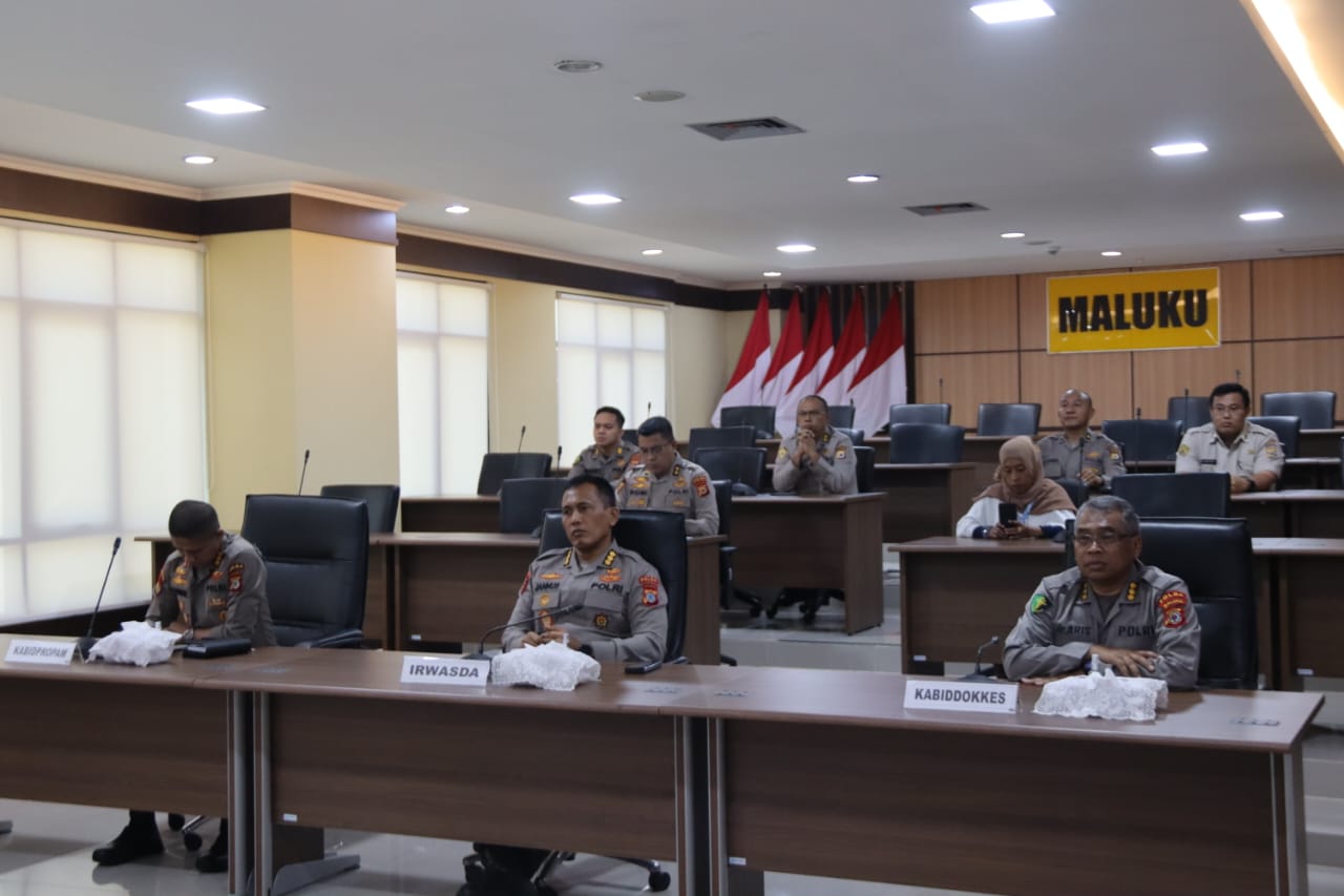 Rapat yang yang dipimpin As SDM Kapolri Irjen Pol Dedi Prasetyo itu diikuti Irwasda secara virtual dari ruang vicon Mapolda Maluku, Selasa (11/4).