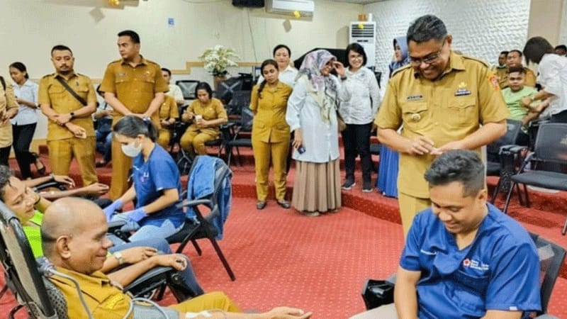 Selain pemeriksaan kesehatan dilakukan juga aksi donor darah bekerjasama dengan Palang Merah Indonesia (PMI) pada ruang rapat Vlisingen, yang juga diikuti oleh seluruh ASN.