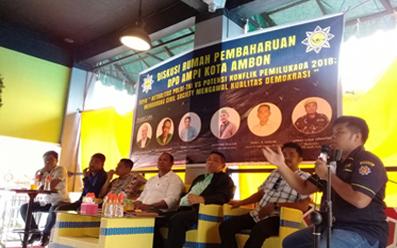 “Karenanya, diskusi rumah perubahan DPD AMPI Kota Ambon dengan topik netralitas TNI/POLRI vs potensi konflik Pemilukada 2018: mendorong civil society mengawal kualitas demokrasi kita lakukan. Targetnya, memperkuat civil society (OKP,Ormas,media,mahasiswa, LSM) untuk mengawal kualitas demokrasi secara baik,” tandas Ketua DPD Angkatan Muda Pembaharuan Indonesia (AMPI) Kota Ambon, Ilham Sipahutar mengawali diskusi di Cahya Cafe Ambon, Senin (25/6/18).