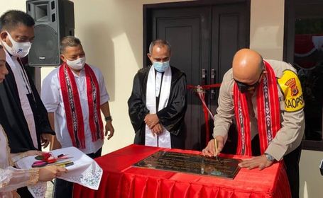 AMBON,MRNews.com,- Pembangunan Pastori Jemaat GPM Kategorial Teratai Kasih Polri-Tantui diprakarsai mantan Kapolda Maluku Irjen Pol Baharuddin Djafar. Yang kemudian meletakan batu penjuru 5 Agustus lalu dan diresmikan Kapolda Maluku Irjen Pol Refdi Andri dan Wakil ketua MPH Sinode GPM melalui penandatangan prasasti, Senin (30/11).