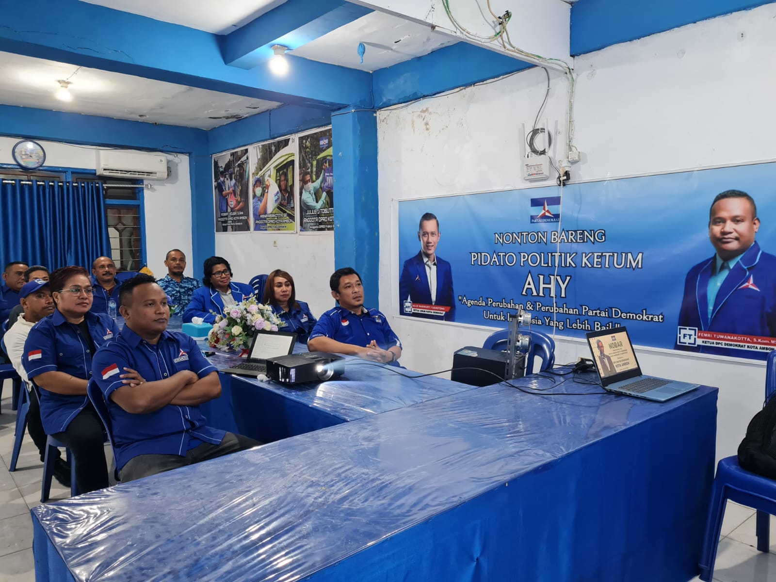 Dipimpin Ketua DPC Femry Tuwanakotta (FT), jajaran pengurus DPC melakukan Nonton Bareng (Nobar) pidato politik ketua umum AHY langsung dari sekretariat DPC di kawasan waringin-Talake Ambon.