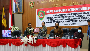 AMBON,MRNews.com,- DPRD Provinsi Maluku melalui Wakil Ketua DPRD Melkianus Sairdekut menerima tujuh (7) Rancangan Peraturan Daerah (Ranperda) usulan Pemerintah Provinsi (Pemprov) Maluku tahun 2021 yang diserahkan Wakil Gubernur Barnabas Nathaniel Orno pada rapat paripurna DPRD, Kamis (22/7/21).