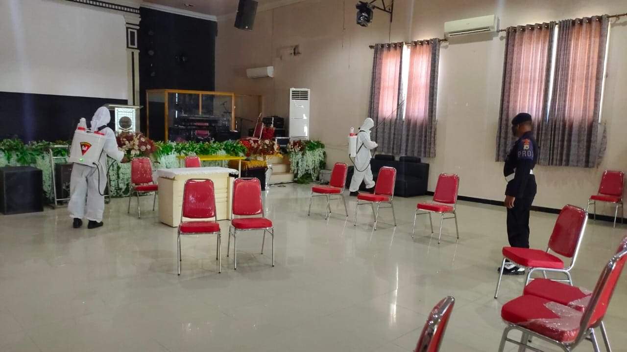 Sterilisasi yang dipimpin Bripka H Makatita menyasar Gereja Sinar Kasih dan Gereja Bethel Indonesia (GBI) Kepulauan Aru, Selasa (01/12/20).