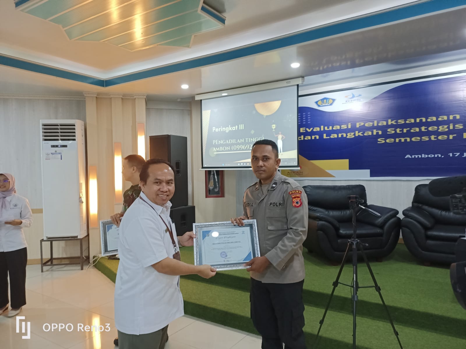 Penghargaan yang diterika yaitu peringkat II kinerja penyampaian laporan pertanggungjawaban (LPJ) bendahara satuan kerja mitra KPPN Ambon periode triwulan II tahun anggaraan 2023.