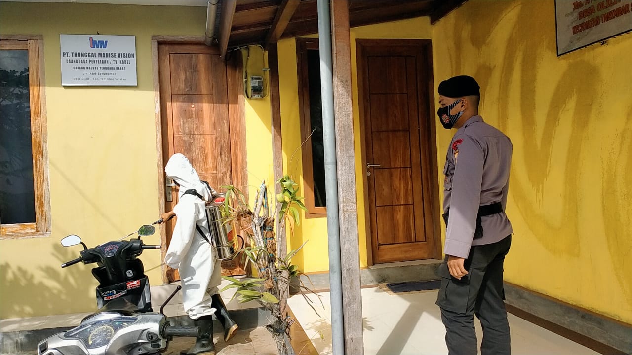 Selain di Namlea, Brimob Maluku lewat personil Kompi 3 Batalyon C Pelopor juga menyemprot disinfektan ke rumah warga Desa Olilit Lama Kabupaten Kepulauan Tanimbar.
