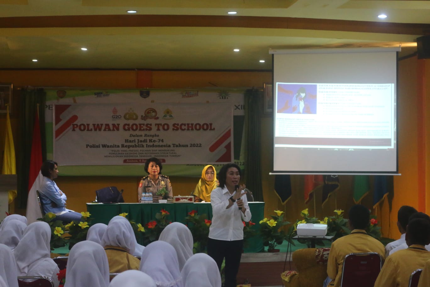 AMBON,MRNews.com,- Menyambut Hari Ulang Tahun (HUT) Polisi Wanita (Polwan) ke-74 pada 1 September 2022 mendatang, Polwan Polda Maluku menggelar sejumlah kegiatan, satu diantaranya yaitu “Goes to School”.