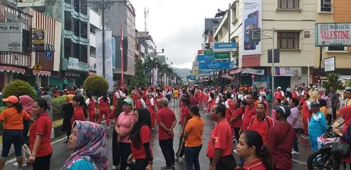 AMBON,MRNews.com,- Hujan sedari pagi terus membasahi kota Ambon. Meski begitu, tak surutkan niat warga kota Ambon untuk ambil bagian dalam goyang Kaka Enda massal melibatkan ribuan orang dengan 300 lebih grup di sepanjang jalan A.Y.Patty, Selasa (3/9/19) dalam rangka menyongsong HUT ke 444 kota Ambon.