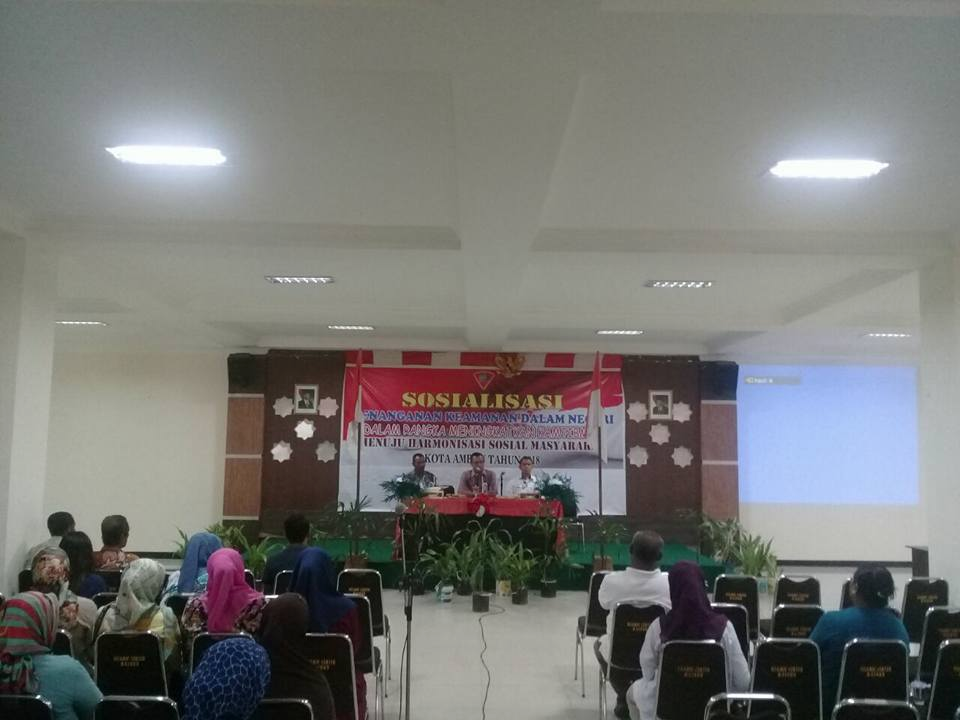 AMBON,MRNews.com,- Pemerintah Kota (Pemkot) Ambon melalui Bagian Tata Pemerintahan Kota Ambon menggelar Sosialisasi Penanganan Keamanan Dalam Negeri Menuju Harmonisasi Sosial Masyarakat, yang berlangsung di Gedung Islamic Center, Jumat (11/5/2018).