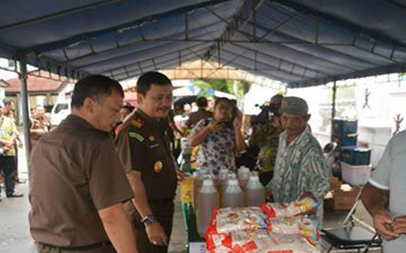 AMBON,MR.-Menjelang perayaan hari raya Idul Fitri 1439/Hijria,tahun 2018, Ikatan Adhyaksa Dharmakarin Kejaksaan Tinggi Maluku,bekerjasama dengan pihak Perum Bulog Divreg Maluku-Malut, menggelar pasar murah bagi syarakat Kota Ambon dan sekitarnya,pada Selasa (5/6).