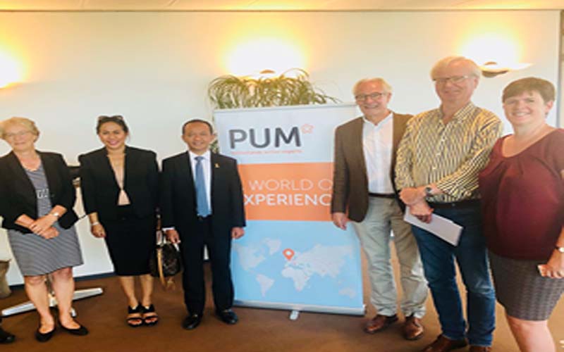 Sebagaimana diketahui, Ketua Umum BPP HIPMI Bahlil Lahadalia dan Delegasi HIPMI-Europe Trade Mission 2018 pemaparkan potensi kerjasama perdagangan Indonesia dan Belanda, utamanya produk Usaha Kecil dan Menengah, dari para petinggi PUM Netherland Senior Experts. Pihak PUM Netherland Senior Experts dipimpin Andy Wehkamp dan Joos van Oort, Country Coordinator untuk wilayah Indonesia. Manajemen PUM adalah para mantan CEO dan top manajemen di berbagai perusahaan multinasional dan organisasi pemerintah yang bermarkas di Den Haag, Belanda. Dengan HIPMI, PUM memperpanjang kerjasama pengembangan pasar Indonesia ke Uni-Eropa.