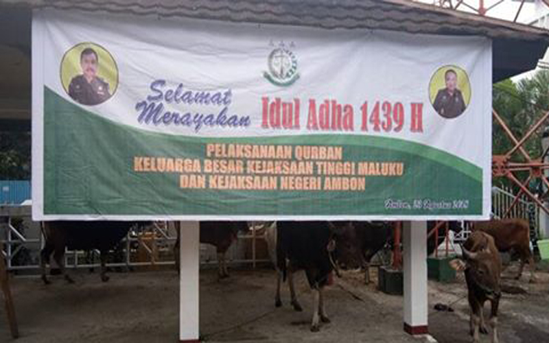 Diketahui Tahun ini, Kejati Maluku menyiapkan 12 ekor sapi sumbangan ASN lingkup Kejaksan Tinggi Maluku, Kejaksaan Negeri  dan  sumbangan perorangan. Dari 12 ekor sapi tersebut, 5 ekor disalurkan kepada panitia kurban di lima Masjid sedangkan sisanya 7 ekor disembelih dan langsung dibagikan kepada yang berhak menerima.