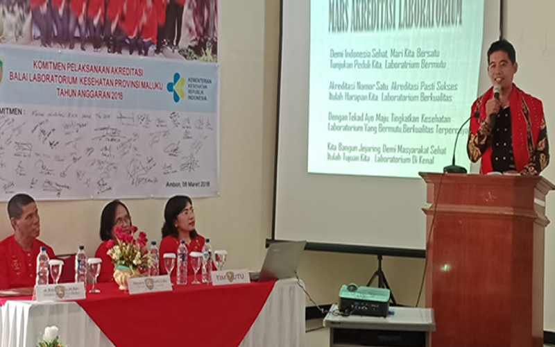 Sehingga menurutnya tujuan akreditasi ini untuk memotret sejauhmana penerapan pelayanan laboratorium kesehatan di bidang administrasi manajemen dan upaya kesehatan perorangan termasuk pengembangan sudah sesuai standar dan mutu pelayanan yang diterapkan. Karenanya diharapkan, jajaran laboratorium kesehatan Maluku dapat menjalankan fungsinya dengan baik dan mampu menerapkan standar dan mutu pelayanan dalam menjawab kebutuhan masyarakat akan mutu pelayanan Laboratorium di provinsi Maluku Tahun 2018 merupakan tahun terakhir pembangunan daerah periode tahun 2015-2019.