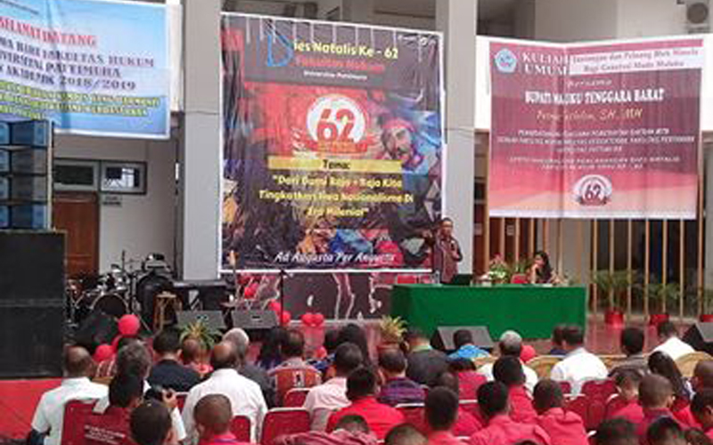 AMBON,MRNews.com,- Bupati Kabupaten Maluku Tenggara Barat (MTB), Petrus Fatlolon menyampaikan kuliah umum kepada seluruh civitas akademika dan calon mahasiswa baru fakultas hukum Universitas Pattimura (Unpatti), di aula terbuka fakultas, Selasa (4/9/18).