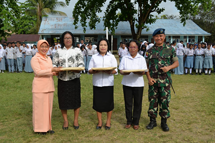 “Penting diselenggarakannya AMSO 2019 ini agar dapat mendongkrak mutu sekolah-sekolah Angkasa menjadi sekolah unggulan dalam rangka menyiapkan generasi emas Indonesia yang akan membebaskan Indonesia dari jebakan pendapatan kelas menengah pada tahun 2045,” ujar Ketua Umum Yasarini Ny. Nanny Hadi Tjahjanto dalam sambutan yang dibacakan Ketua Yayasan PIA Ardhya Garini Lanud Pattimura Ny. Adim Sapuan, saat memimpin upacara pembukaan AMSO 2019 bagi siswa/i Sekolah Angkasa di Lapangan Upacara SMA Angkasa Lanud Pattimura, Ambon, Rabu (23/10/2019). (MR-02)