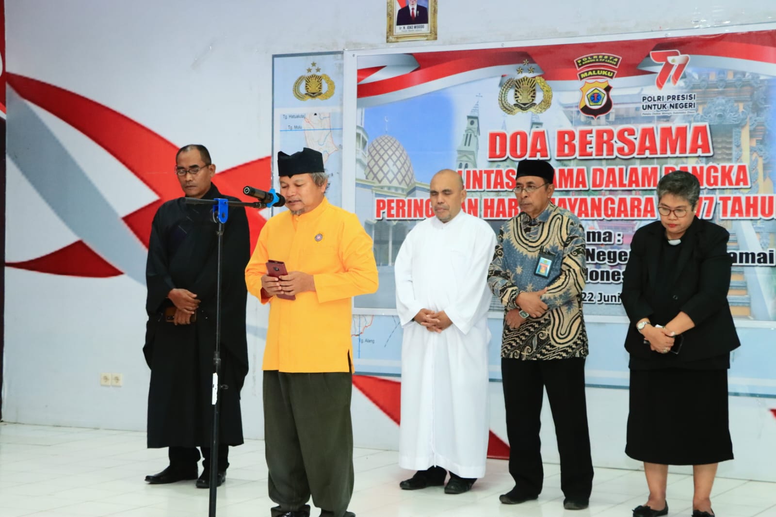 AMBON,MRNews.com,- Menjelang hari Bhayangkara ke-77 pada 1 Juli mendatang, Polresta Pulau Ambon dan Pp Lease menggelar doa lintas agama di Aula Mapolresta Ambon, Kamis (22/6).