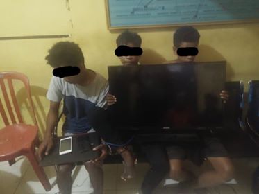 AMBON,MRNews.com,- Kepolisian sektor (Polsek) Salahutu berhasil melakukan penangkapan terhadap tiga orang remaja pelaku pencurian barang-barang spesial tenda pengungsian korban gempa, Selasa (15/10/19). Parahnya, ketiga pelaku masih kategori dibawah umur diantaranya MJM (17), MJAO (17) dan TL (16).