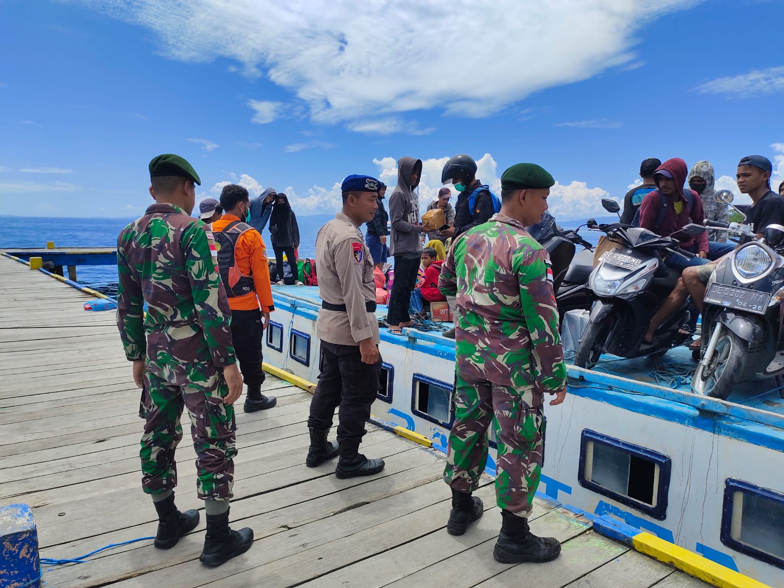Sedangkan di Pelabuhan Rakyat Tahoku Kabupaten Maluku Tengah oleh personil Kp.XVI-1010 bersama Dinas Perhubungan, Basarnas Ambon dan personil BKO Armed 1 Kostrad melakukan pengawasan dan pengamanan arus naik turun penumpang dan bongkar muat sembako.