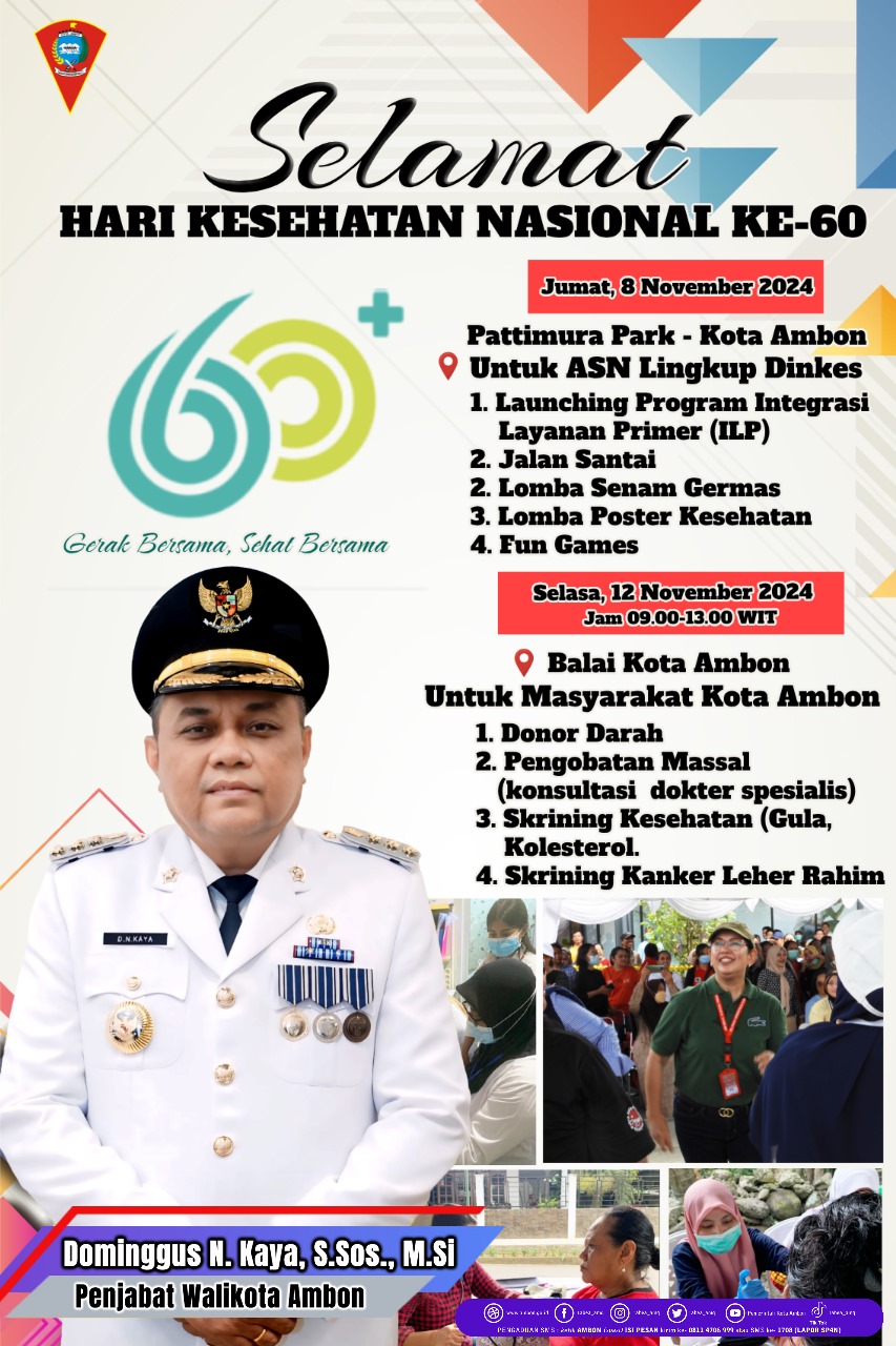 AMBON,MRNews.Id. – Dinas Kesehatan (Dinkes) Kota Ambon akan melaunching Program Integrasi Layanan Primer (ILP) pada peringatan Hari Kesehatan Nasional (HKN) Ke – 60, Jumat (8/11/24) besok, di Pattimura Park.