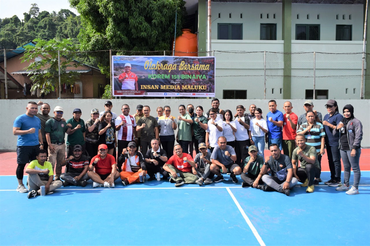 AMBON,MRNews.com,- Guna mempererat tali silaturahmi dan perkuat kerjasama, Danrem 151/Binaiya Brigjen TNI Maulana Ridwan mengajak insan pers di Kota Ambon olahraga bersama dan coffee morning di Saung Makorem 151/Binaiya, Jum’at (18/11).