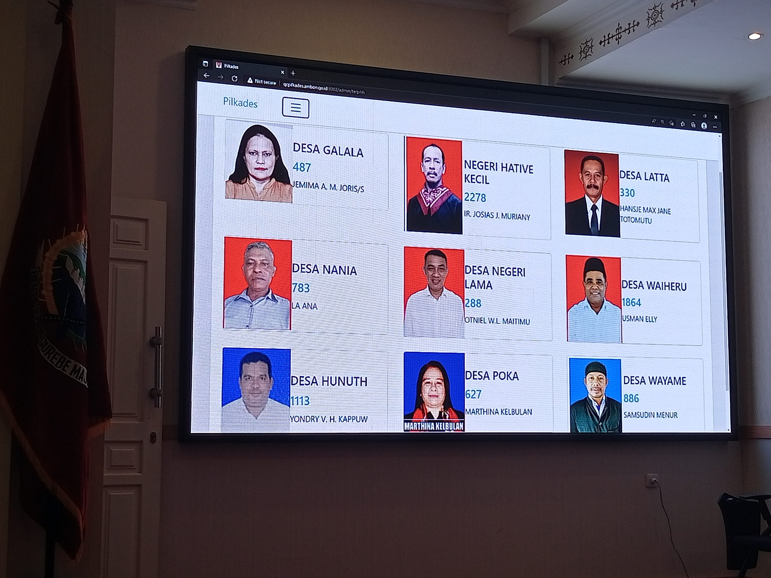 Sekretaris Kota (Sekkot) Ambon Agus Ririmasse yang juga ketua panitia Pilkades tingkat kota menjelaskan, sesuai hasil hitungan di TPS yang dikombinasi dengan Quick Count, didapat hasil sementara untuk Desa Galala, unggul Yemima M Joris.