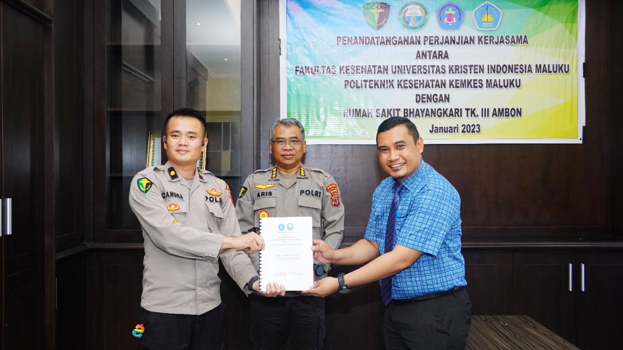 AMBON,MRNews.com,- Polda Maluku melalui Bidang Kedokteran dan Kesehatan (Biddokkes) dan Rumah Sakit Tingkat III Bhayangkara Ambon, teken kerjasama dengan Fakultas Kesehatan (Fakes) UKIM dan Politeknik Kesehatan (Poltekkes) Kemenkes Maluku.