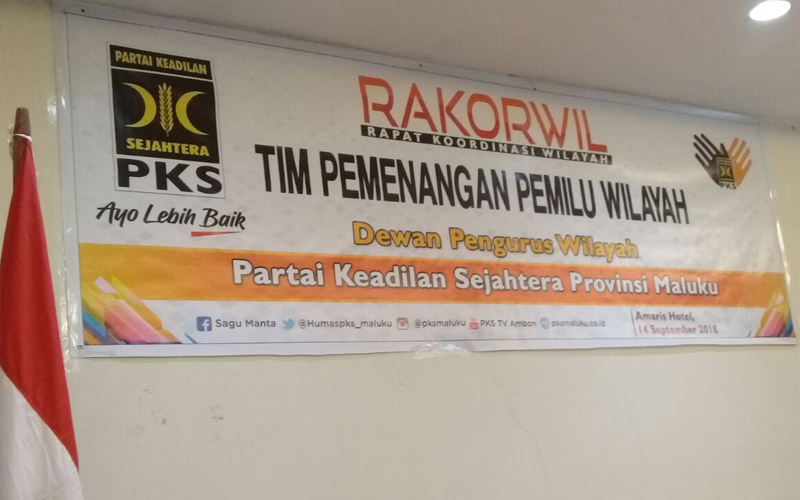 AMBON,MRNews.com,- Dalam rangka pemenangan pemilihan legislatif (Pileg) dan pemilihan Presiden-Wapres (Pilpres) tahun 2019 mendatang, Dewan Pimpinan Wilayah (DPW) Partai Keadilan Sejahtera (PKS) Provinsi Maluku melakukan rapat koordinasi wilayah (Rakorwil) yang melibatkan pengurus DPW, pimpinan DPD Kabupaten/Kota se-Maluku serta tim pemenangan DPP, di Amaris Hotel, Jumat (14/9/18).