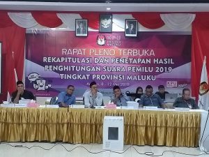 AMBON,MRNews.com,- Rapat pleno terbuka penghitungan suara hasil Pemilu 2019 tingkat KPU Provinsi Maluku yang sejak dibuka pada tanggal 8 Mei, kemudian diskors