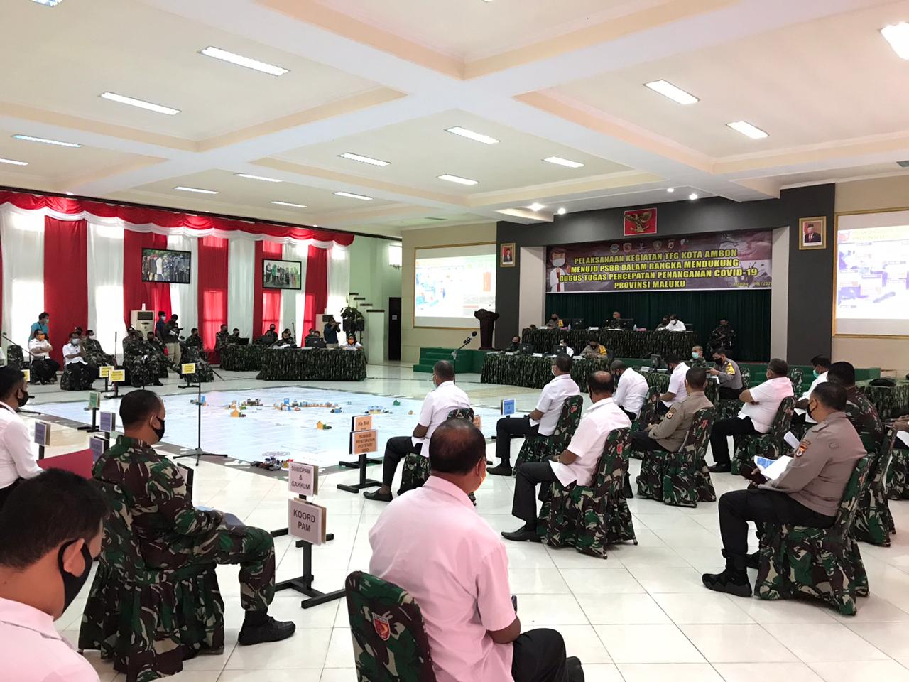 AMBON,MRNews.com,- Kapolda Maluku Irjen Pol Baharuddin Djafar turut menghadiri pelaksanaan Tactical Floor Game (TFG) guna mendukung percepatan penanganan Covid-19 di Aula Slamet