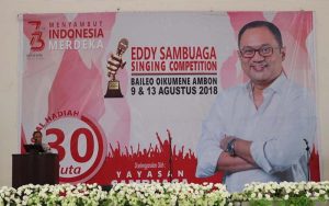 AMBON,MRNews.com,- Sekretaris Kota (Sekkot) Ambon, A.G.Latuheru membuka Lomba Nyanyi dalam rangka memperebutkan Eddy Sambuaga Cup yang diselenggarakan di Baileo Oikumene, Kamis (9/8/18).