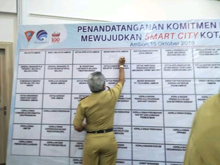 AMBON,MRNews.com,- Seluruh kepala organisasi perangkat daerah (OPD) Pemerintah kota (Pemkot) meneken kesepakatan bersama atau memorandum of understanding (MoU) untuk Ambon smart city.