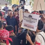 AMBON,MRNews.Id.- Aksi Solidaritas Masyarakat Maluku menggelar unjuk rasa di halaman Kantor DPRD Provinsi Maluku, Senin (16/6/2025), menolak keberadaan tambang batu kapur PT
