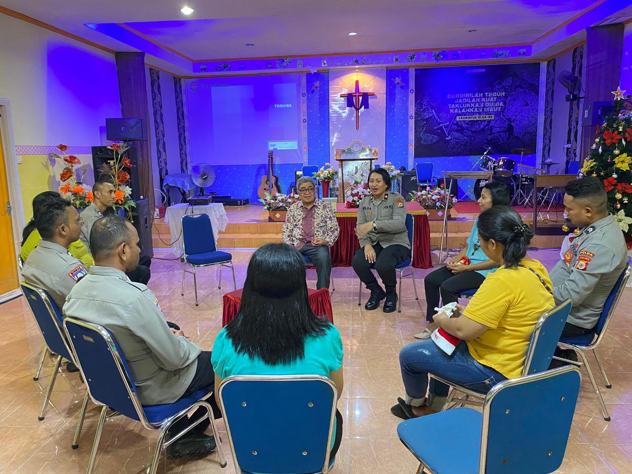 Dipimpin Kompol Helda Misse Siwabessy, tim Satgas Preemtif, Subsatgas Binmas OMB Salawaku menyambangi gembala sidang dan pelayan GBI El Shaddai di Jalan Rijali, Kecamatan Sirimau, Kota Ambon, Minggu (17/12).
