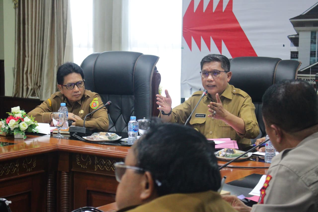 AMBON,MRNews.Id.- Walikota Ambon Bodewin Wattimena, memimpin rapat evaluasi dalam rangka kesiapan pelaksanaan Upacara Bendera, 17 Agustus. 2025 mendatang.